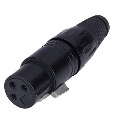 فیش مادگی کنون XLR سه پین میکروفن فلزی مشکی، از نوع کانکتورهای سرکابلی بوده و به کابل انتقال صدا و کابل میکروفن متصل میشود. جهت اتصال کابل میکروفن باید از سه پین فلزی درونی این سوکت استفاده شود.